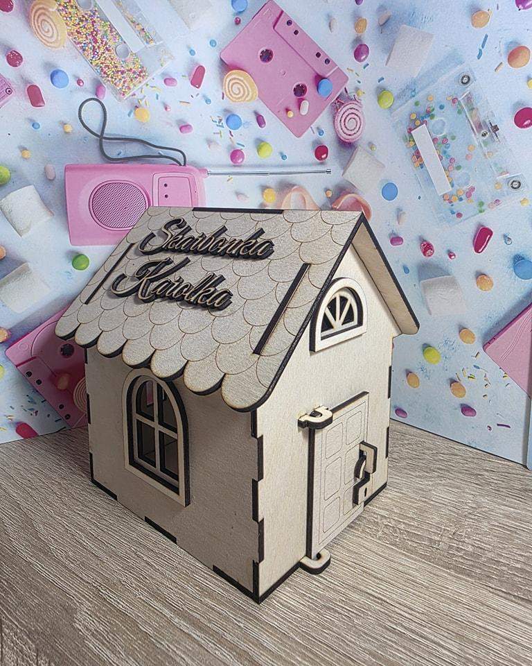 Skarbonka DOMEK z otwieranymi drzwiami, personalizowana.